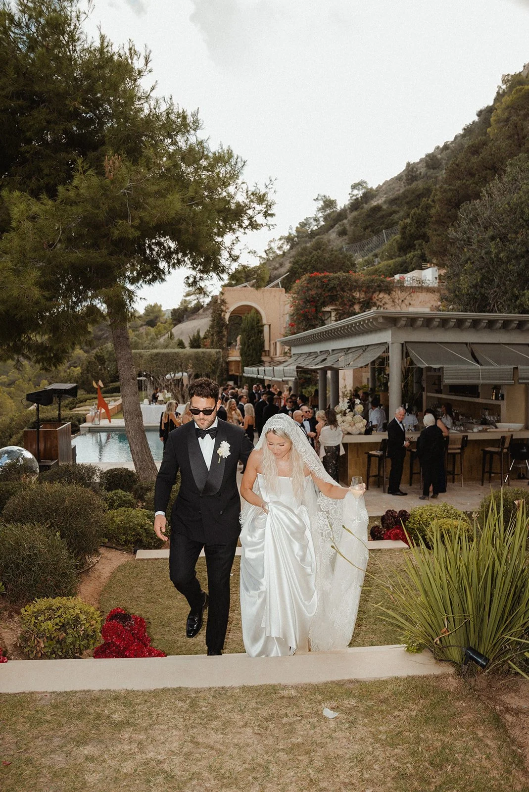 Perched on the edge of the island with the sea stretching below, this wedding was fashion forward with black tie made sexy.